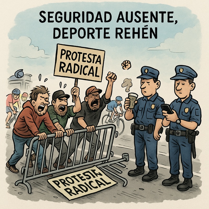 Lo que debía ser una fiesta deportiva seguida en todo el mundo se ha convertido en un escaparate ideológico. La Vuelta a España, emblema del esfuerzo y la superación, ha sido interrumpida por manifestaciones que no eran solo pro-palestinas, sino directamente pro-Hamas, que nada tienen que ver con la solidaridad con el pueblo palestino, blanqueando y dando voz a una organización terrorista que utiliza la violencia como método. Manifestaciones pro-Hamas han empañado, precisamente en las provincias vascongadas, una de las pruebas deportivas más importantes de nuestro país, ESPAÑA.
